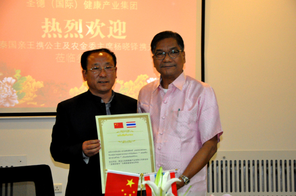 5月22日,泰国亲王素博•巴莫阁下,巴莫•优雅和巴莫•雅娅公主殿下,中国农金委杨晓铎主席及夫人一行莅临圣德(国际)健康产业集团,杨学国董事长携全体工作人员组织了热烈的欢迎仪式。