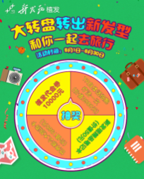 这个夏天让礼惠雨露均沾,让每一根发丝都变得更精致,不要再让头发问题遮蔽了你的光芒。新发现植发《大转盘转出新发型,和你一起去旅行》助你踏上成功之路。活动时间截止到六月底,把握机会,你也能化身为男神、女神。珍贵机会错过将不再,你还在等什么?